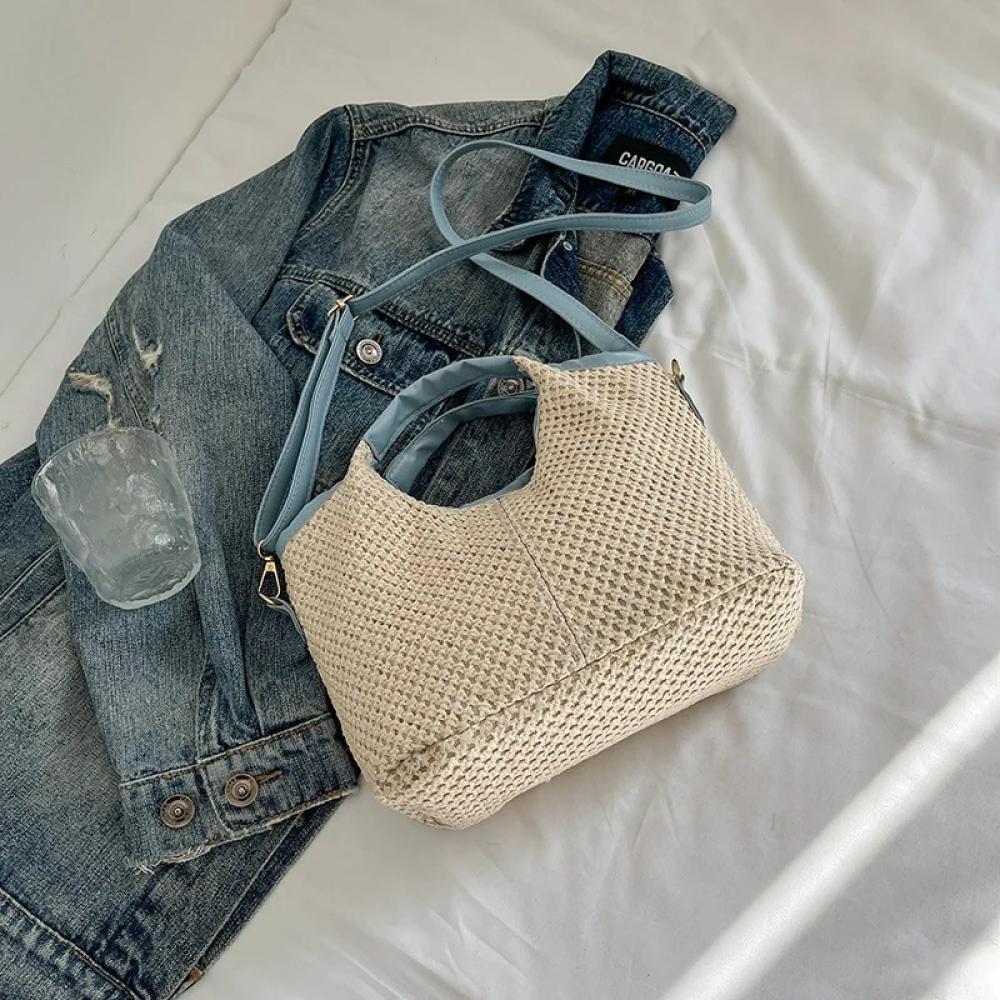 حقيبة صيفية نسائية تجمع بين الأناقة والراحة بخامات خفيفة وألوان مبهجة تناسب أجواء الصيف مع تصميم عملي يتيح حمل الأغراض الأساسية بسهولة.
