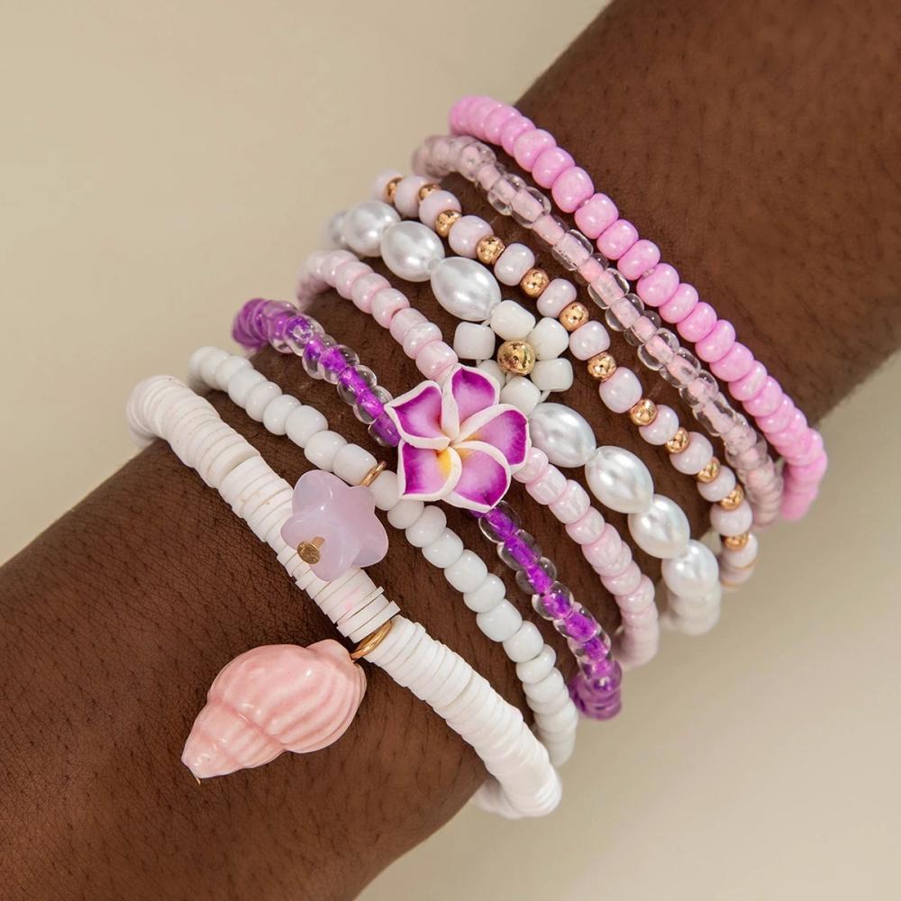 اساور لؤلؤ تضيف لمسة أنيقة وإحساساً بالصيف لكل إطلالة شاطئية. تجمع بين البساطة والأنوثة في تصميم مستوحى من البحر، لتناسب مختلف الأذواق وتمنحك مظهراً جذاباً وفريداً.